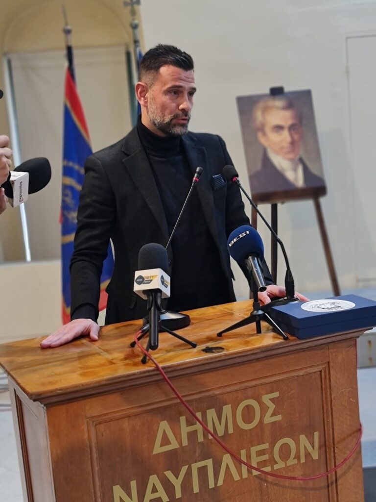 Ο δήμαρχος Ναυπλίου Δημήτρης Ορφανός τίμησε τον Μιχάλη Μουρούτσο για τη συνολική προσφορά του στον ελληνικό αθλητισμό, απονέμοντάς του τιμητική βράβευση.